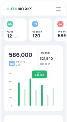 위드웍스 플랫폼 사용 이후 물류센터 10명 기준 2000건 처리가 가능해졌습니다.